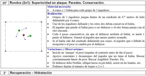 Ejemplo: las clásicas posesiones de balón en inferioridad numérica, los partidos en espacio reducido… siempre buscando los objetivos tácticos marcados por el entrenador (presión del balón, circulación del balón, desdoblamientos…).